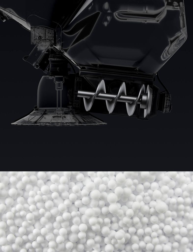El Sistema de Esparcimiento T100 ha sido completamente mejorado, con el doble de capacidad de carga y un aumento del 270 %[7] en la tasa de flujo. Equipado con un nuevo tornillo sin fin, lo que lo hace adecuado para varios productos granulados y diferentes escenarios de dispersión en grandes campos, huertos, acuicultura y más.